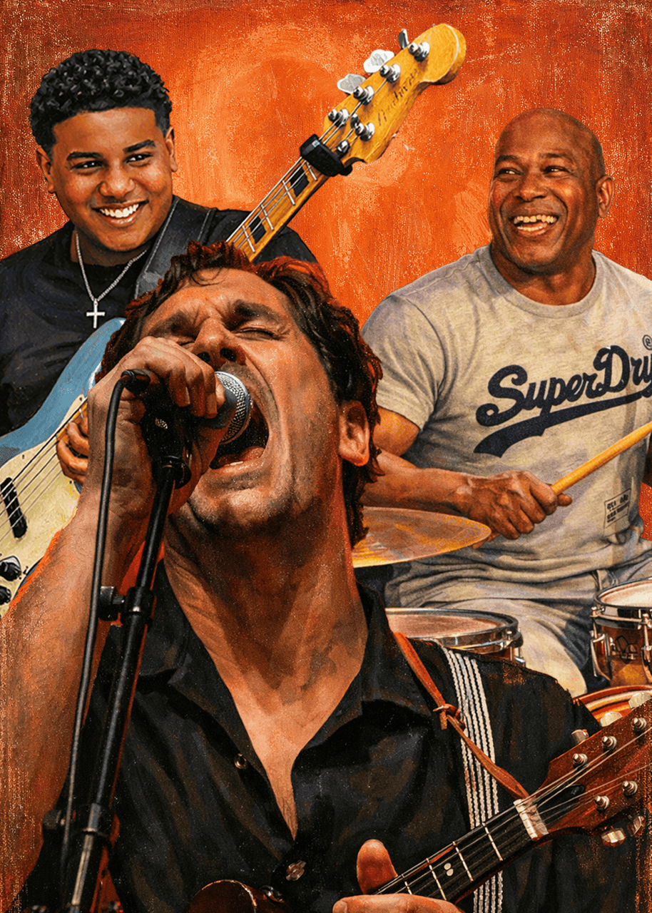 Met Randells zoon, Kyan Sambo, op basgitaar en synthesizer, vormen ze nu La Chaleur — een opzwepende nieuwe band die moeiteloos schakelt tussen uiteenlopende muzikale safari’s. Van Zululand tot de Mississippi Delta, van de Ethiopische bergen tot de Nigerdelta in Mali: het publiek wordt meegesleept naar een schemergebied tussen muzikale werelden. Stilzitten is geen optie — dit is La Chaleur!